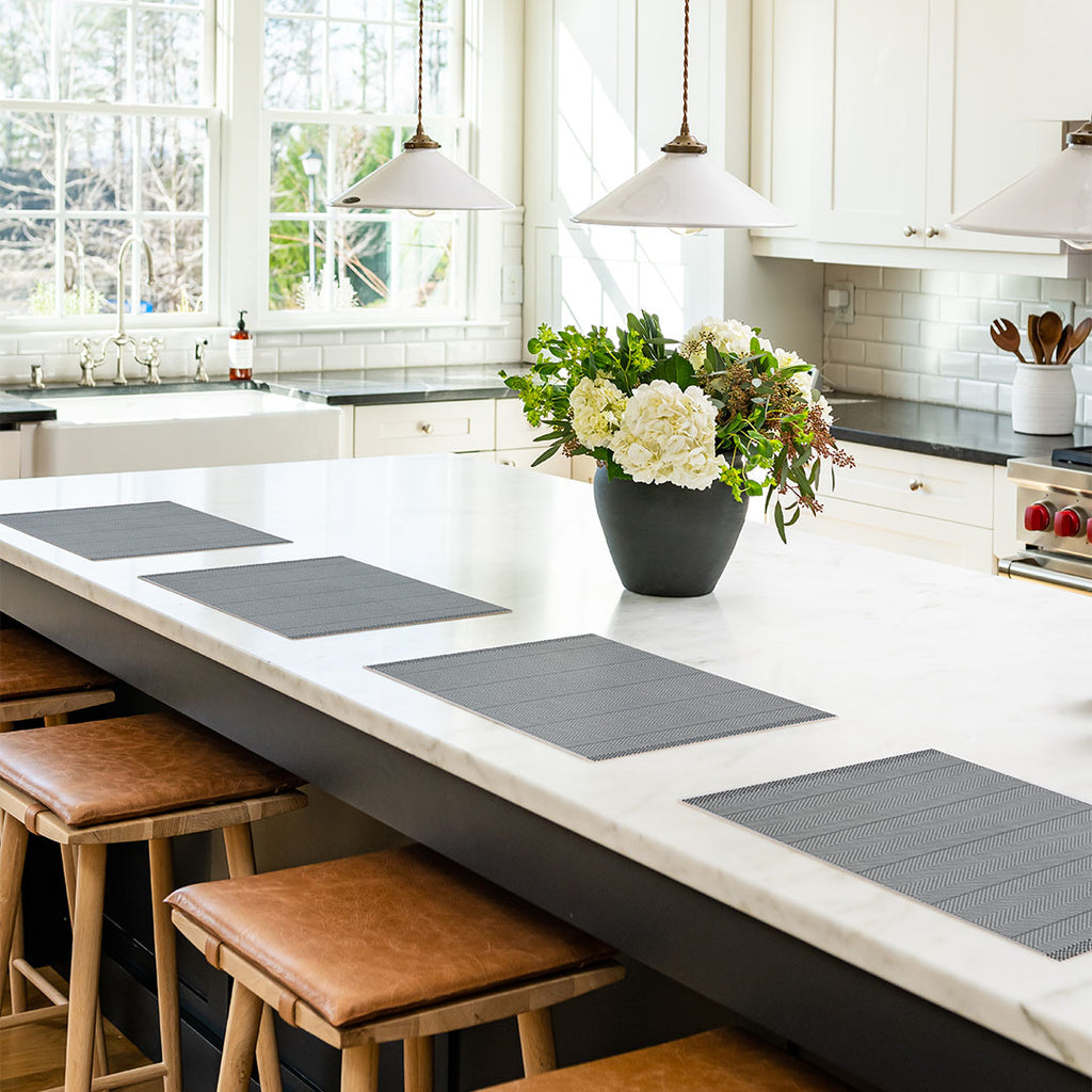 Stylish, durable, low-profile mats with no-curl edges are the perfect way to move from washable to wipeable.