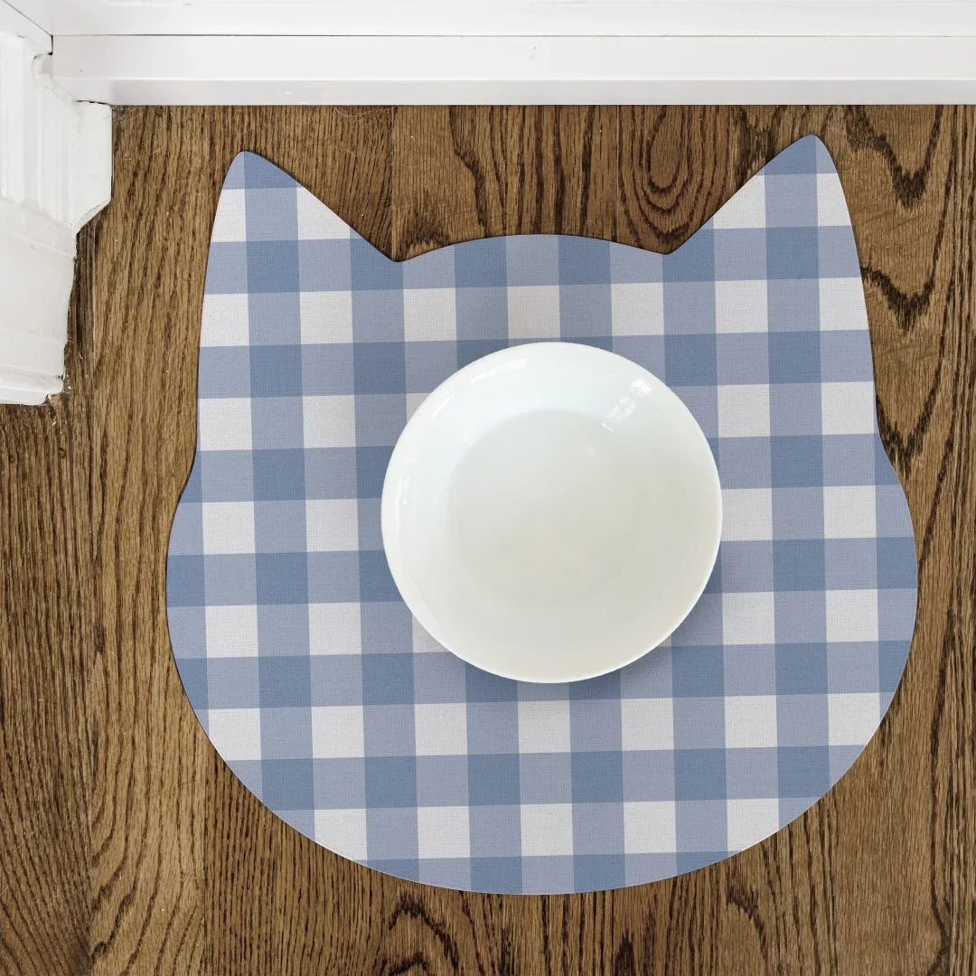 Betty Cat PetFlat | Gingham Blue - Premium Vinyl Mat