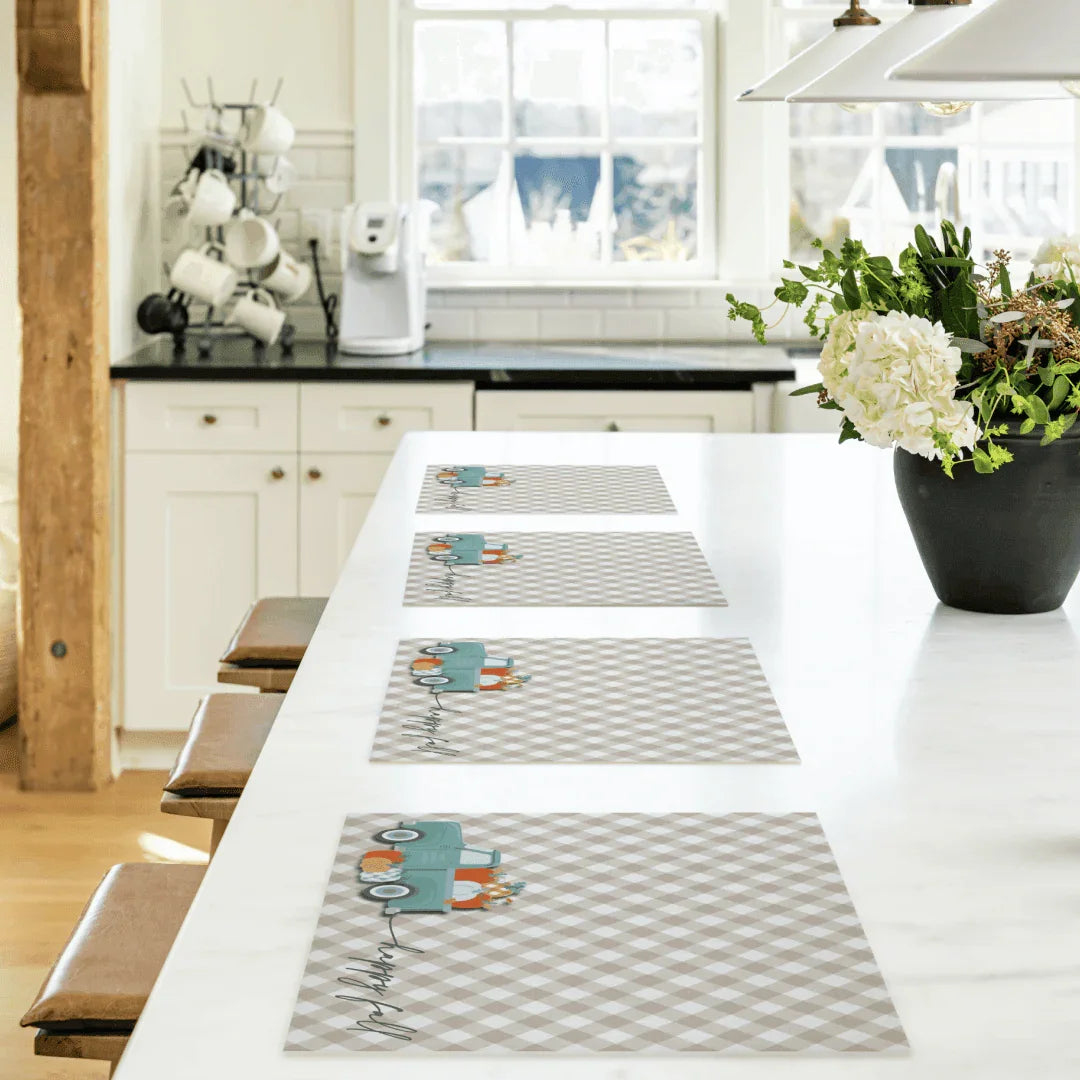 Happy Fall Pumpkin Truck Placemat | Brown - Premium Vinyl Mat