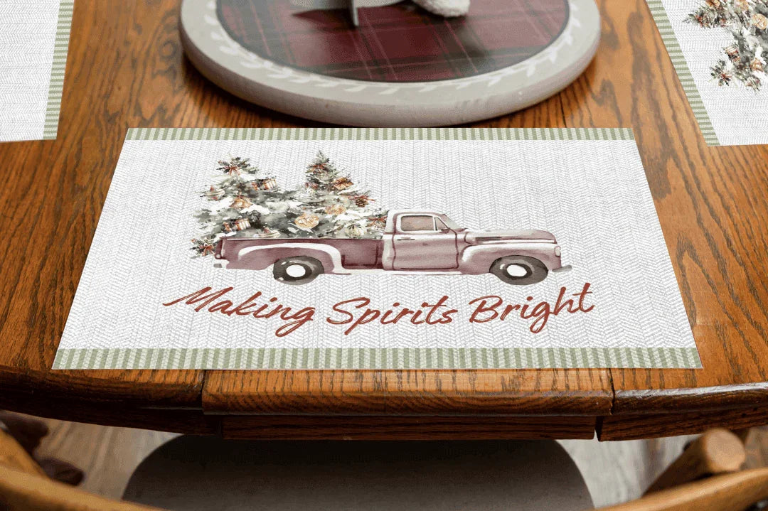 Spirits Bright Truck Placemat | Premium Vinyl Mat)