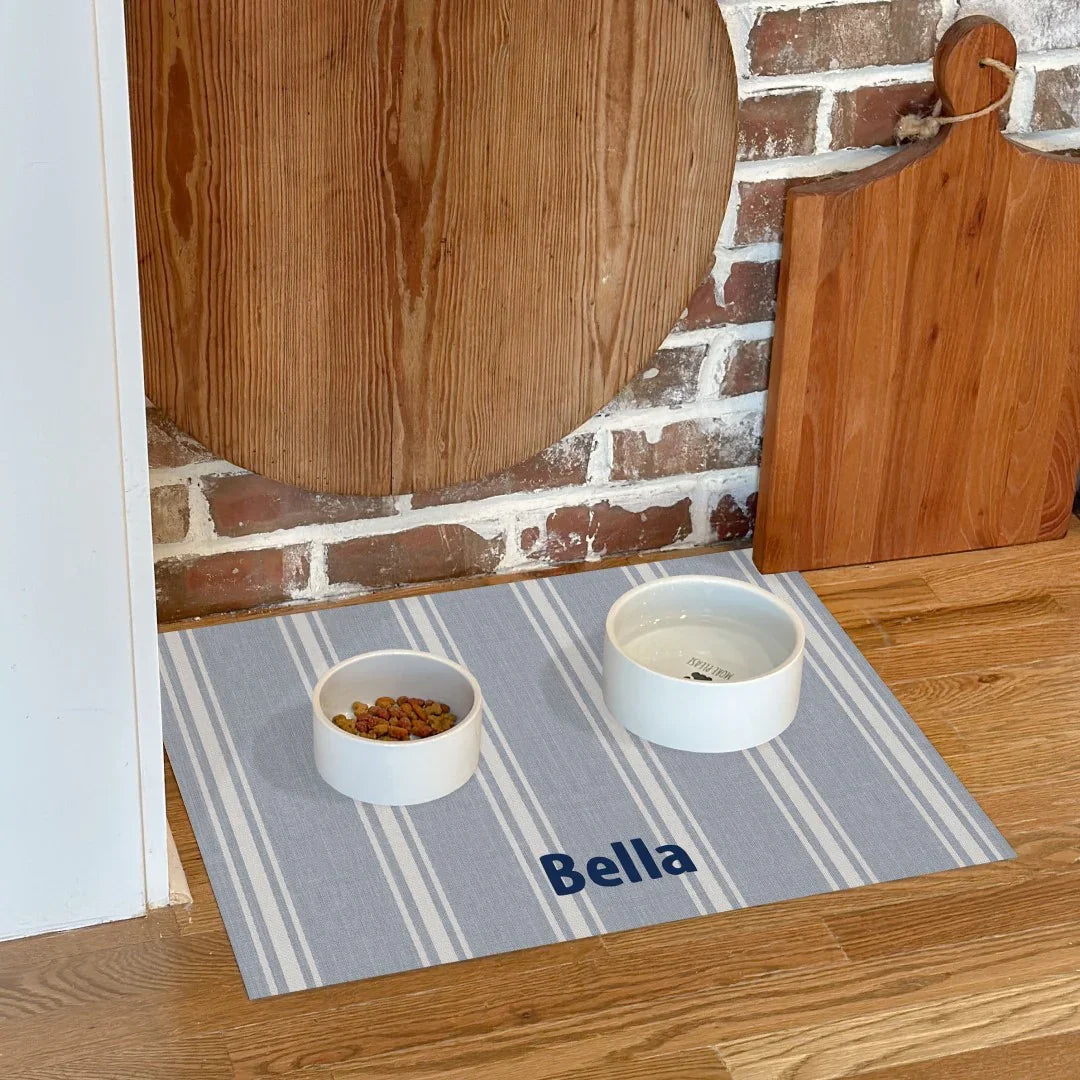 Add a dash of charm and a whole lot of function to your pet’s space with our Custom Jane Blue Pet Mat. Featuring our classic stripe texture in a soft, blue palette, this mat brings timeless style and effortless cleanup to your home. Designed with pets and pet parents in mind, it’s made from premium, wipeable vinyl that resists spills, water bowls, muddy paws, and everyday messes.